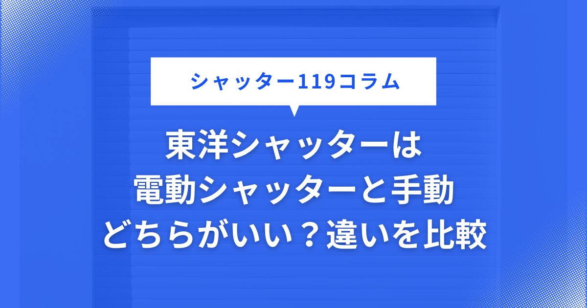 東洋シャッターは電動シャッターと手動どちらがいい?違いを比較