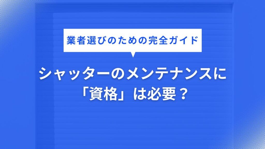 「定期メンテナンスをしたいけれど、資格のある業者に頼むべき?」「電動シャッターのモーター交換や配線に資格はいるの?」「防火シャッターの法定点検は誰に頼めばいい?」