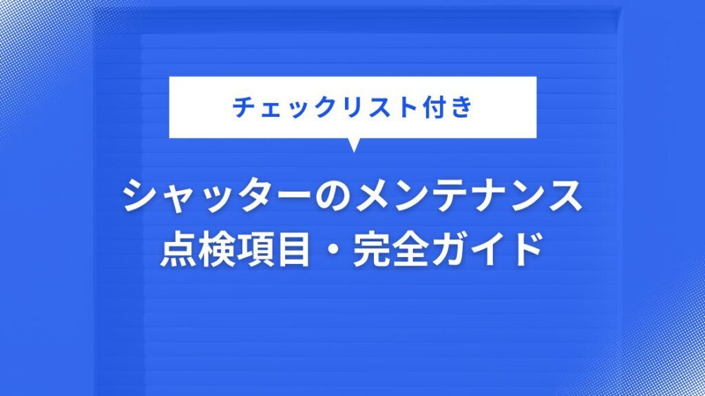 本コラムは、現場でそのまま使える「シャッターのメンテナンス点検項目」を、頻度別・種類別に整理した保存版です。